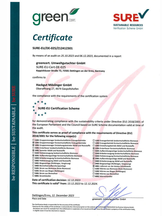 • Wir erfüllen die Anforderungen der Rechtssicherheit nach EU-Richtlinie RED II 2018/2001