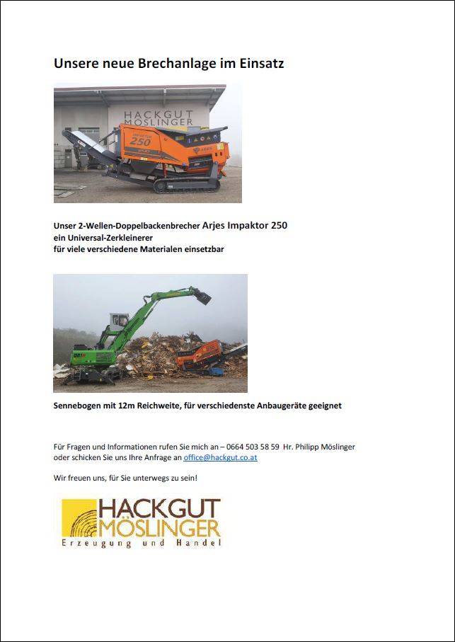 Hackgut Möslinger GmbH – Hackguterzeugung Oberösterreich  »  News Hometitle_li=News  »  Unsere neue Brechanlage im Einsatz